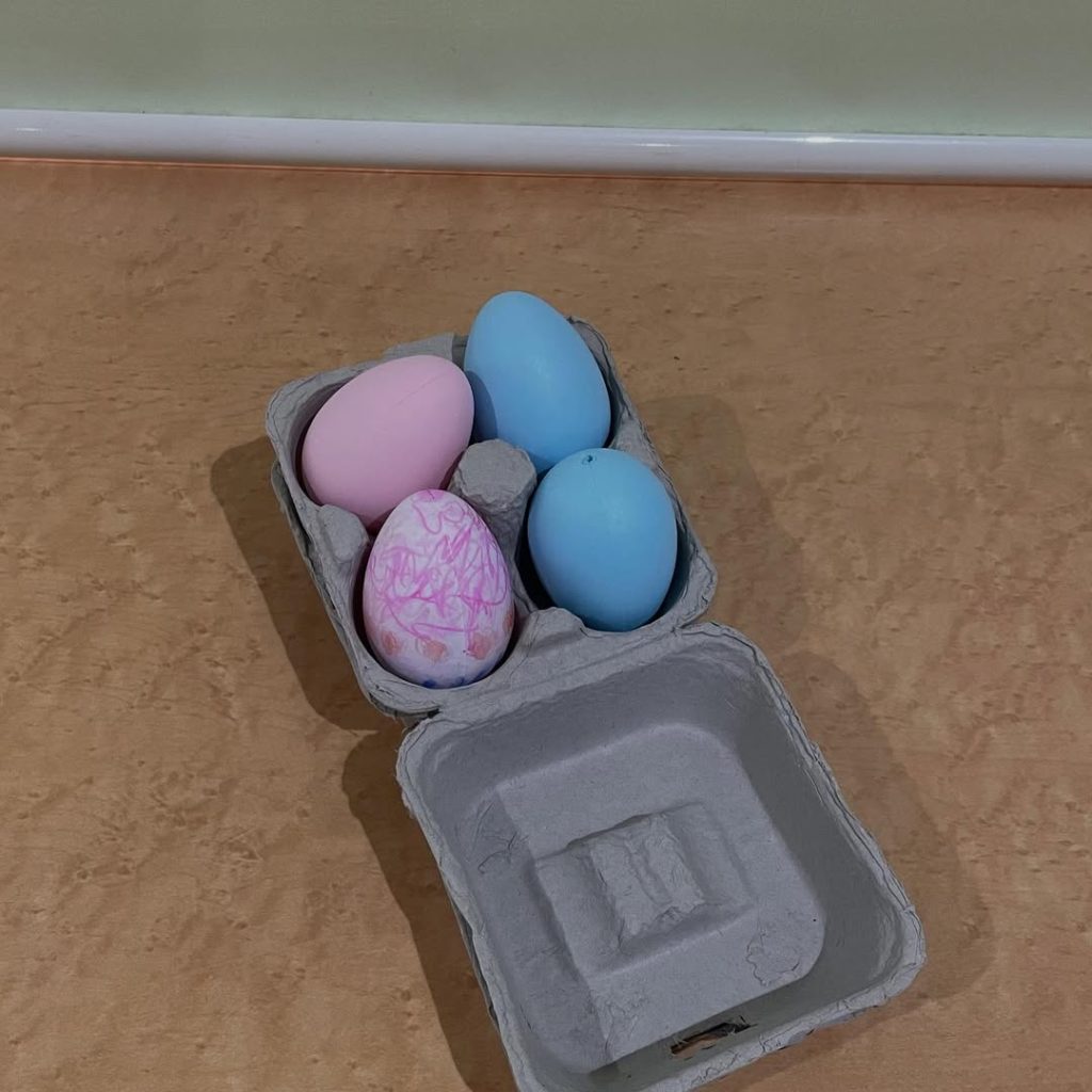 ダイソーの卵を使って、みんなで卵をデコレーションしました。