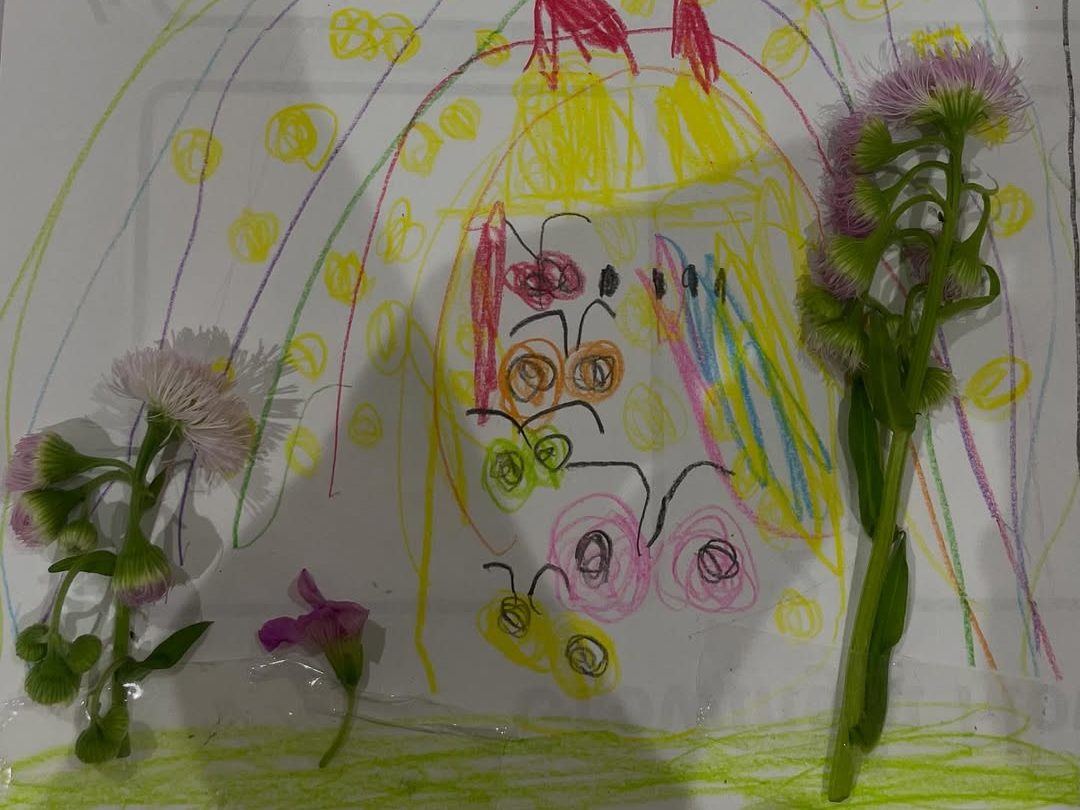 本物の草花を使って、紙にMagical gardenを描きました。虹や蝶々、ユニコーンも描いて楽しいお庭ができたと思います。事前にお花を摘む体験もでき、簡単で楽しいアクティビティでした。